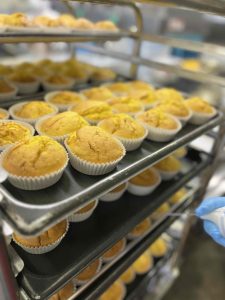 焼き上がりはふんわりしています。この後しぼんでしまうので改良を加えたいと思いますが、味と食感はとても上手にできました!