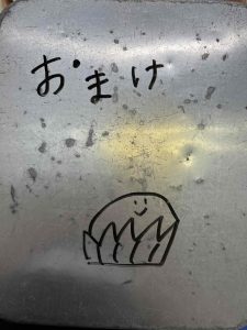 チーフがかぼちゃマフィンのおまけを持たせてくれました。いつも絵が上手です。チーフはアレルギーのマフィンを作るのもとても上手なので、たまごが食べられない子も遜色ない美味しいマフィンが食べられたと思います。アレルギーのある子にも美味しいものを作りたい!と、いつもおうちで何度も練習してくれて、とてもありがたいです。