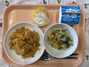 今日は月曜日から元気が出るように子どもたちの好きな献立にしました!配るのが簡単な献立にしてあるので、1年生でも食べる時間がしっかりとれたと思います!!1年1組と2組は配膳の時点でチキンライスが完売だったと聞いてうれしくなりました(*^_^*)今年の1年生もとても優秀です!