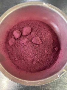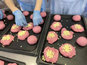 埼玉県産の「ビーツ」という野菜を粉末にした物で色づけしています。ビーツ100パーセントなので自然のもので安心して食べられます。