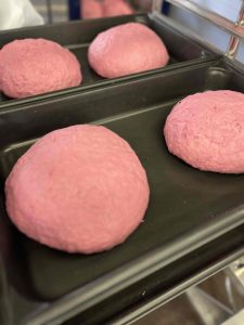 今日は桜献立第二弾ということで『桜色手作りパン』に挑戦しました。小金井桜は去年名勝指定100周年を迎えました。次の100年まで小金井の桜が続いていくように願いを込めて作りました。