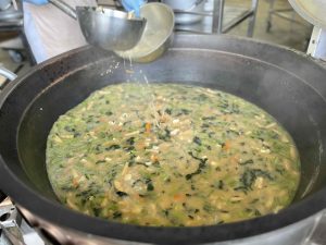 汁物はいつも熱々を配るように心がけています!夏でも!冬でも!南中(私)のこだわりの1つは提供温度なので、調理員さんはいつも早く配り始めたい気持ちをぐっとこらえて回転釜の前で時計を見つめています(^_^;)イツモスミマセン。デモマイニチオネガイシマス♡