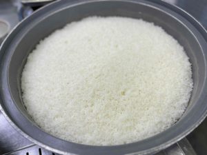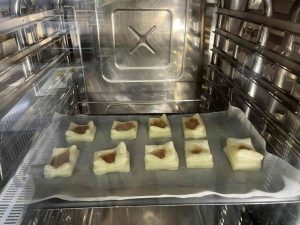 今日はオーブンを使わない献立だったので、調理員さんにお願いして6月の試作をしてもらいました。2回やりましたが、不安が残るので再度練習することになりました。新しい献立を給食で提供する場合は、家で練習し、給食室でも本番と同じ条件で練習して、当日失敗しないように気をつけています。1つ完成するまでに、量の問題、作業工程の問題、仕上がりなどいろいろ考えることがあり、時間も手間もお金もかかります。でもきっと学校給食に関わる栄養士さん、調理員さんは同じような苦労を重ねて子どもたちに新しい献立を提供してると思うので、私も頑張らなきゃなと思いながら、連日失敗作を家で消費しています。本番成功しますように!!