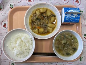 今週は土曜日の体育大会に向けて炭水化物強化WEEKです。体育大会に向けて毎日練習で体力・筋力を使っているので、タンパク質で筋肉の補修を+炭水化物でエネルギーを補給してもらおうと、炭水化物を意識した献立の1週間です。土曜日のお天気が今のところ怪しいのですが・・・何とか晴れて(曇りぐらいがいいですが)ほしいです。子どもたちの頑張る姿を多くの保護者の方にも見ていただきたいので、何とか晴れますように!!3年生にてるてる坊主を作ってねと言われたので、今日ちゃんと作ろうと思います!