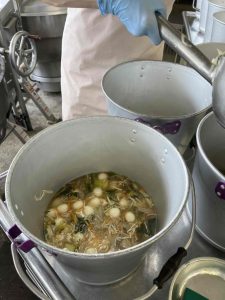 白玉入り中華スープはクラスにまんべんなく白玉が行き渡るように、丁寧に配缶してくれています。教室でよく混ぜないで配って白玉を残すことがあるので、今日の給食時間は白玉パトロールをしました。子どもたちは白玉が大好きですから、残さず食べるように声をかけるとよろこんで「食べる!」と元気な顔を見せてくれました。
