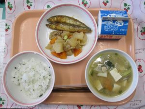 今日はカルシウムがたくさん含まれているお魚と言えば「ししゃも」ということで、ししゃものかりん揚げを作りました。たれの味がいつも好評です。ししゃもを家で食べる機会はそう多くはないと思います。しかし、給食では骨ごとまるっと食べることが出来るので、レギュラーメンバー入りしています。人気はそこまでありませんが・・(^_^;)