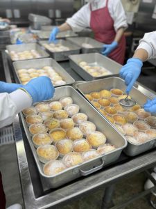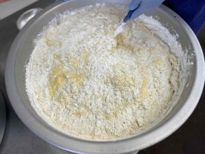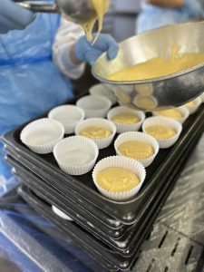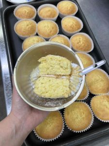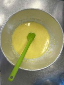 今日は生地に生クリームも使っています。途中生地がダマになり心配しましたが、最後は大丈夫でした。練習と本番は作る量が違うので、やはりドキドキします。