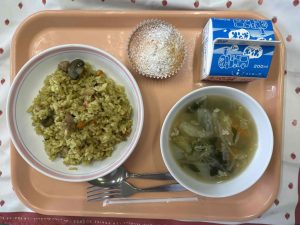 レモンの皮をよく洗ってすりおろして使いました。とても良い香りが給食室に漂っていました。
