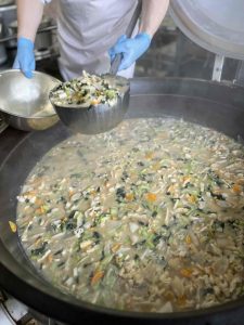 打ち豆汁には潰した大豆が入っています。「打ち豆」を手に入れるのに苦労しました(>_<)子どもたちは大豆が苦手ですが、こういう郷土料理もあるんだということを知ってほしいと思い取り入れました。さまざまな食体験が人生を豊かにしてくれると考えています。