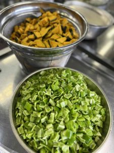 カレーにも何種類も野菜が入るため、調理員さんは朝から切り物が大量でずっと大忙しでした。ありがとうございました。