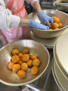 写真は冷凍みかんを2度数えしているところです。水で1度洗った後に、1度数えて、その後に数の間違いがないように再度数え直します。今日も調理員さんが丁寧なお仕事をしてくれました☆