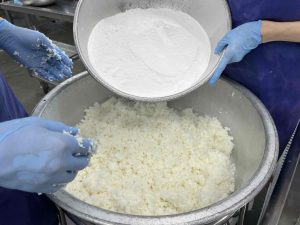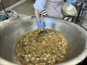 今日は「防災の日」です。そこで今日は小金井市の地域安全課さんから無償で提供いただいた防災備蓄食材のアルファー化米を使って「雪見汁」を作りました。真夏のような暑さが続いているのに「雪見汁」とは?と思うかもしれませんが、アルファー化米と白玉粉を混ぜ合わせて団子を作り汁に加えていること。また、大根をすりおろしたものを加えていおり、その見た目が雪やみぞれに似ていることからこの名前が付いています。