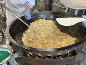 炒り卵も上手にできました(*^_^*)調理員さんが大汗をかきながら、心を込めて作ってくれました。