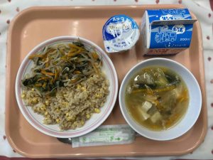今日は人気のビビンバを作りました!白いご飯じゃないので今日はきっと完食のクラスも多いはず!!
