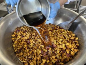 油で揚げて、大豆と一緒に手作りのみつをからめて仕上げます。いつも人気です!でも、時々大豆だけ残す子がいます(^_^;)今日は食べてくれるかな・・・。