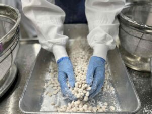 大豆のかりんとう。毎回、口の中の水分が奪われる献立だなと思いながらも作り続けています(^_^;)1年生には大好評でした!1年1組には長蛇のおかわりの列ができていました。今日も完食ありがとうございます。