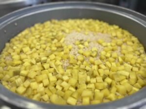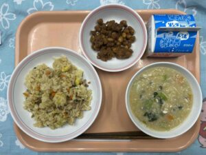 今日は「秋の香りごはん」として、「かつお」でだしをとり、今が旬のさつまいもやしめじを使った炊き込みごはんを作りました。さつまいもはごはんと一緒に炊飯しています。毎年秋に1回作っている献立なのですが、味は美味しいにもかかわらず、生徒の反応があまり良くない献立でした(´・ω・`)でも今日はそのことを昼のお手紙に書いた影響か?ほとんどのクラスが完食でした!今までで一番食べてくれました!!優しい子どもたちに感謝の気持ちでいっぱいです!!