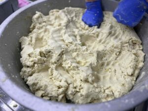 白玉粉とお砂糖を混ぜ、生地を作っていきます。