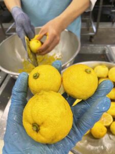今日は小金井産の「柚子」を魚の下味に使いました。調理員さんが手作業で皮をおろし、果汁を搾ってくれました。主張しすぎない味でしたが、一口目魚を食べるとふわっと「柚子」が香りました。次回は下味ではなく、さけを焼いた後に柚子みそだれをかけてみようと思います。その方が柚子の香りを楽しめるかなと思いました。また一つ研究をしなければ!!宿題の多い人生です(^_^;)