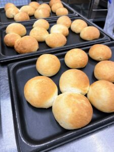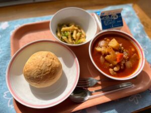 今日は久しぶりに手作りパンを作りました。給食室に生地をこねる機械がないので全部調理員さんが手でこねています。調理員さんにとって、とても負担の大きい献立のひとつであること、また、何度も挑戦してきましたが思うように仕上がらず、少し作るのをお休みしていました。でも、給食のアンケートをとったところ「南中の手作りパンがおいしい!」と回答してくれた子が複数いました。そのコメント読んで、大変だけれどまた挑戦したいと思い今日作ることにしました。