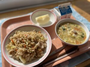 ごはんの上におかかと、青のりをトッピングして完成しました。調理員さんとごはんが多いから、バットのふたにおかかと青のりがついてもったいないねなんて話をしていたのですが、給食時間中に2年生の担任の先生から「ごはんが足りないと子どもたちに言われて〜」と声をかけられました。そんなに食べてくれるのかとうれしくなりましたが、これ以上ごはんバットに入らないぐらい作っているので、次回はどうしようかなと悩みます。もっと多く作ってバット2個かな(^_^;)子どもたちの成長を感じた日でした。