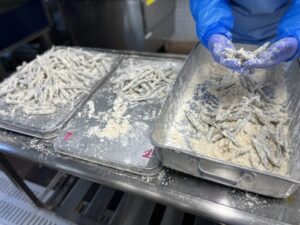 きびなごの唐揚げも用意しました。きびなごがカチコチに凍っていて、味がいつもより入らなかったように感じ、子どもたちが食べてくれるか心配でしたが、残菜はほとんどありませんでした!優秀です!!