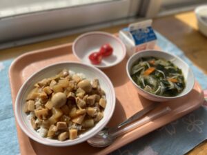 ルーローハンは台湾の代表的な食べ物です。給食であまり作ったことがないので、今日は調理員さんに「味の正解はこれで合っていますか?」と聞かれました。給食で八角や五香粉(ウーシャンフェン)を使うと、本場過ぎて子どもたちが食べにくいと思い、今日は粉さんしょうを少し入れて作りました。主張しすぎない量にしたので、そこまで抵抗なく食べられたと思います。1.2年生はほぼ完食でした٩(๑´3`๑)۶