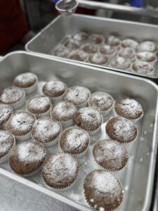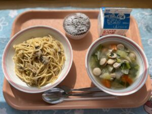 生地に溶かしたチョコレートとチョコチップも加えました。「濃厚で美味しかった!」と声をかけてもらえて嬉しかったです(^^)調理員さんは紙カップに生地を分割しながら「もう、これだけで美味しそう!(*^^*)」とニコニコでした。子どもたちも給食時間にみんなニコニコしており、満足した様子がうかがえました。