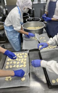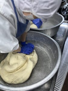 約500人分のすいとんを2人でこねこねします。とっても力が必要です!!