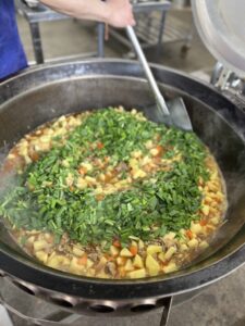 ニラたっぷりのキムチ肉じゃがは女子にも男子にも人気です。たまごわかめスープも密かに人気で今日は3年生にレシピを聞かれました。頑張ってレシピ集に盛り込みます!