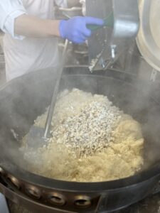 鯛はオーブンで焼いてから皮を取り除き、ほぐしてからごはんに混ぜました。脂がのっていてとても美味しい鯛で、調理員さんも今まで使った鯛の中で一番脂がのってる!と喜んでいました。