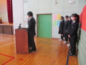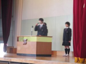 生徒会長、図書委員、生活委員からの連絡や発表がありました。